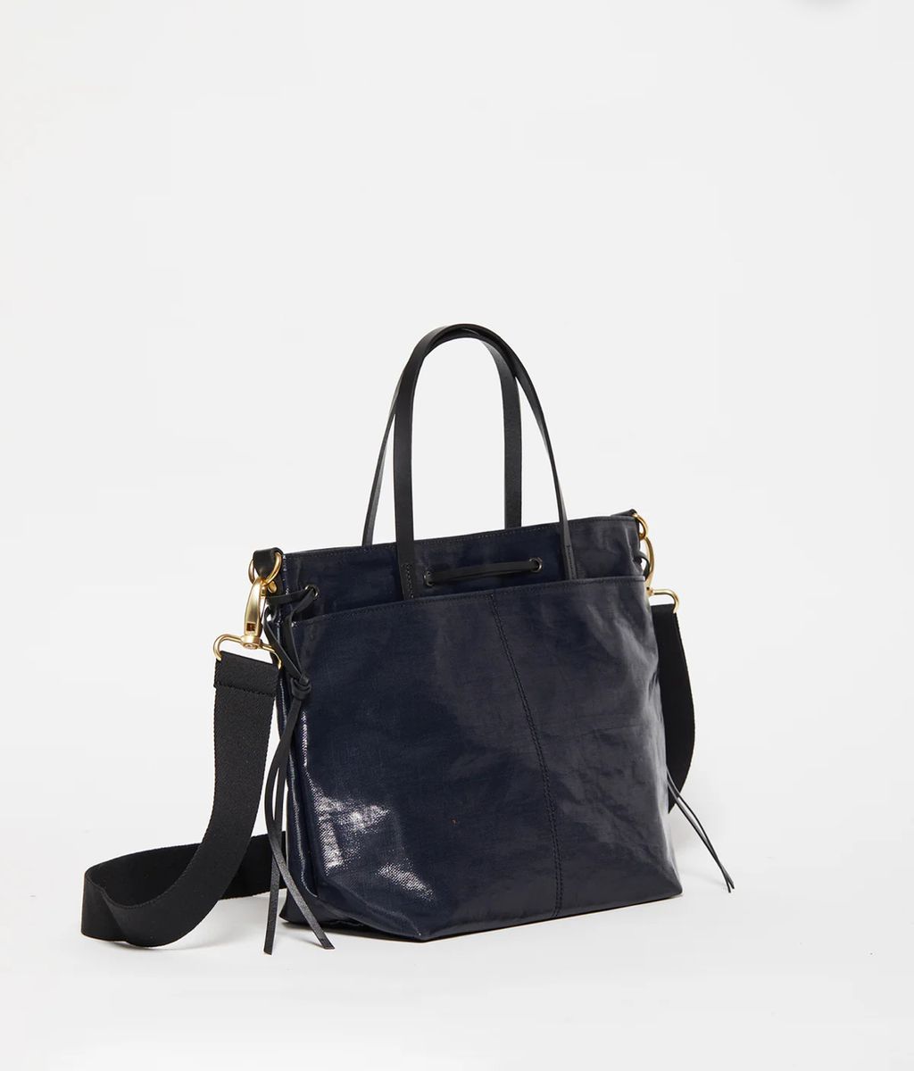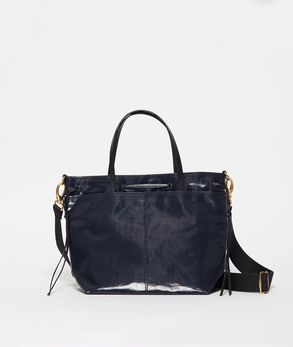 法國小眾品牌,包款皆於法國設計製造。簡約的文青風格很耐看,也好搭,在日本非常受到歡迎,法國當地售價240歐元。材質光澤感圖層麻料,具防潑水特性,毛毛雨可以撐一下,但不能防水。不可放洗衣機洗,髒了濕布擦拭即可。有一個內袋;四個外袋;兩側有皮革拉繩,拉緊後成為水桶包,如圖三。尺寸:25 x 26 x 13 cm, 可調整背帶長30cm重量:370g