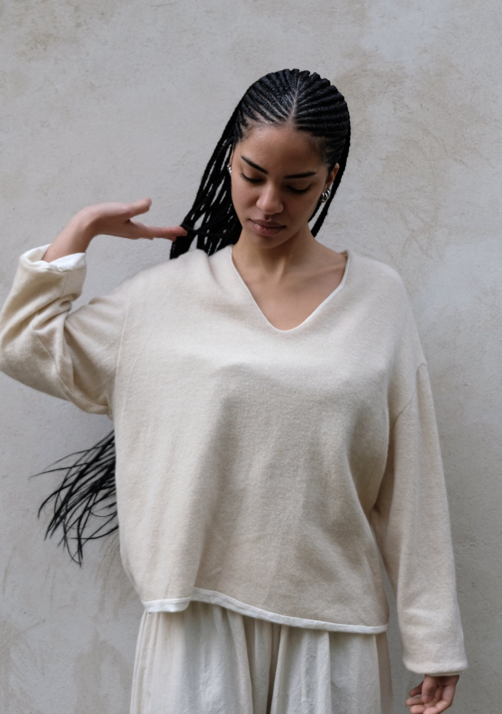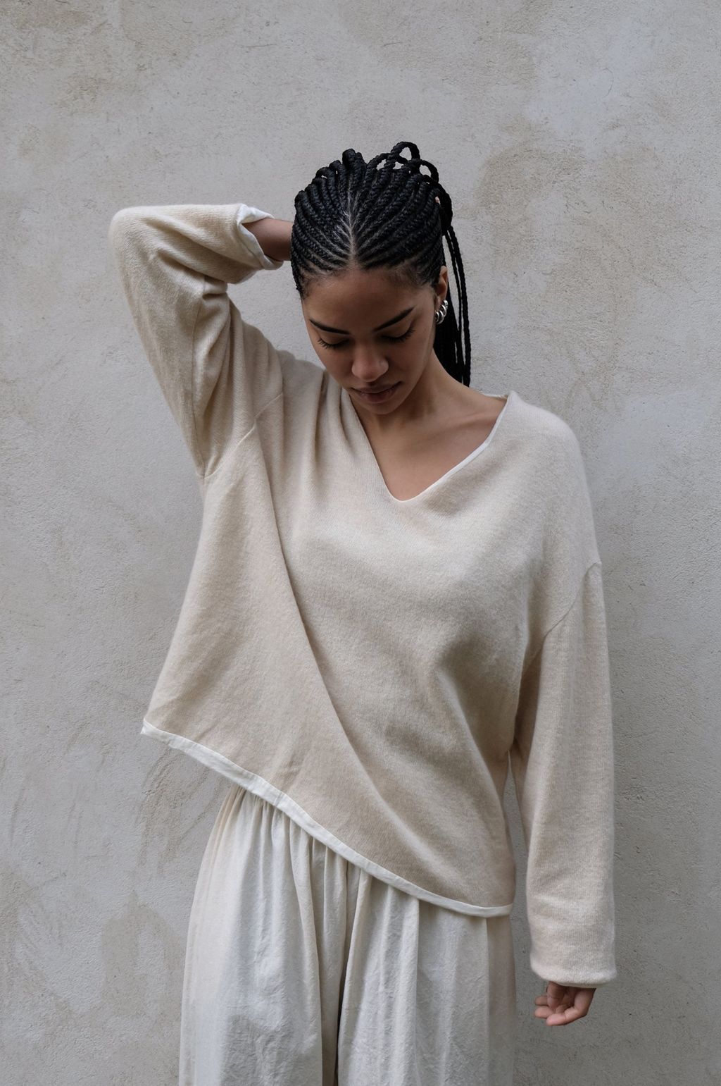 V領薄羊毛上衣 - 外灰內白 | elsa esturgie