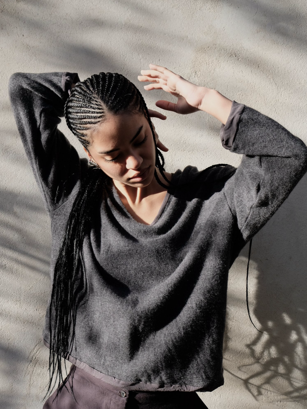 Elsa Esturgie x Les Tutus 合作款:灰色羊毛+ 米白有機棉內裡,非模特穿的全灰色。